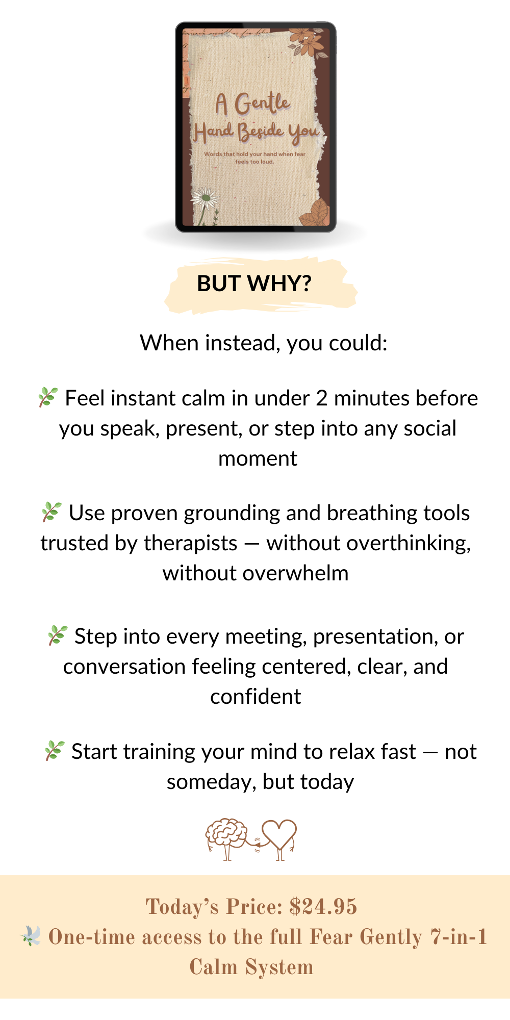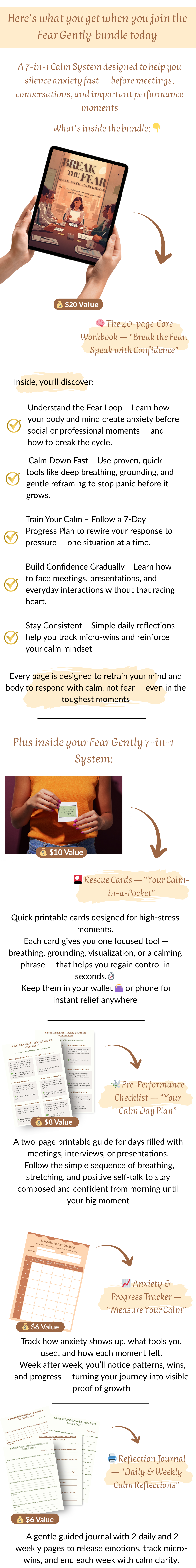 After a week of using Fear Gently's Calm Tools , something shifted. I learned how to breathe through the panic, ground myself, and speak with ease.